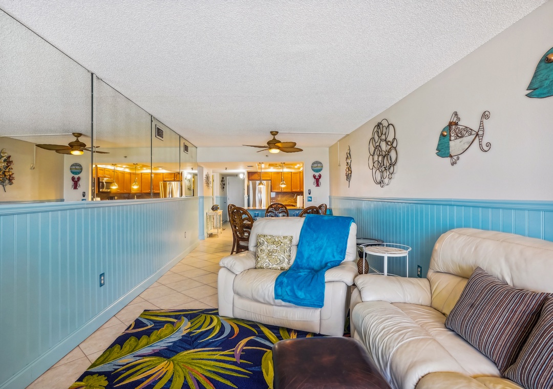 Pros: VERY clean upon arrival, well thought out design and layout, incredible view, great location, plenty of room for our group of 5. Having laundry in unit was a big plus as well. The beach is fantastic, wide, and so soft. I loved the screened in porch to keep bugs away, and the ceiling fans helped the air circulate even on warm days.
