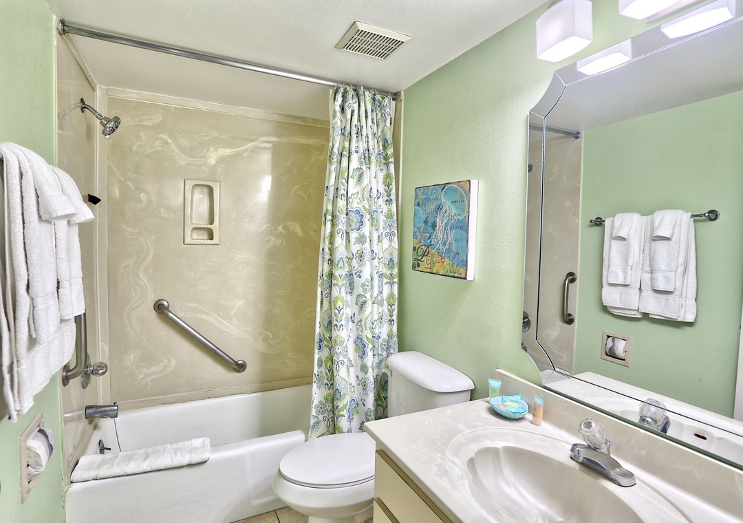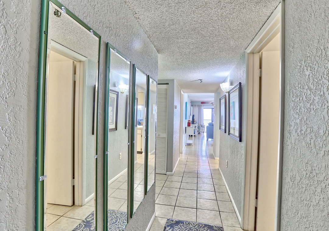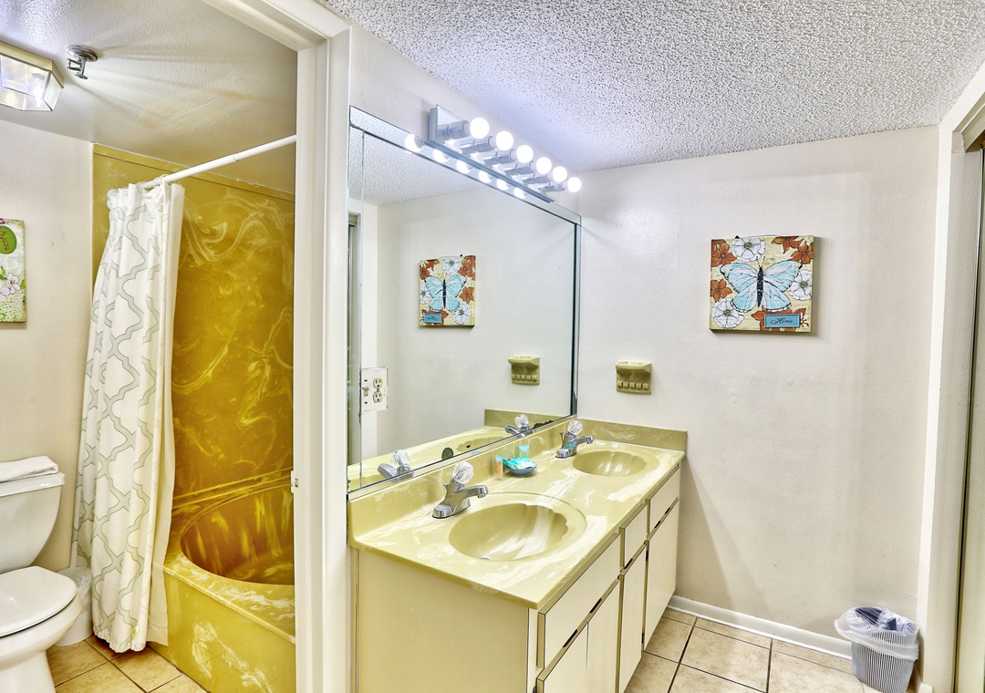 This was our second year staying at this building, different units each year. This unit, 609, is very dated. The furniture has visible stains, the master bedroom mattress has a large impression on one side of the mattress, which made sleeping very uncomfortable. However, some of these are expected when staying in a rental. Our visit was enjoyable regardless of the few things about the unit. Had the pictures of the unit showed more of the master bath, we may not have picked that unit (the dated portion!). We would definitely stay at this complex again! Likely a different unit.- Reviewed On: 7/20/2024
