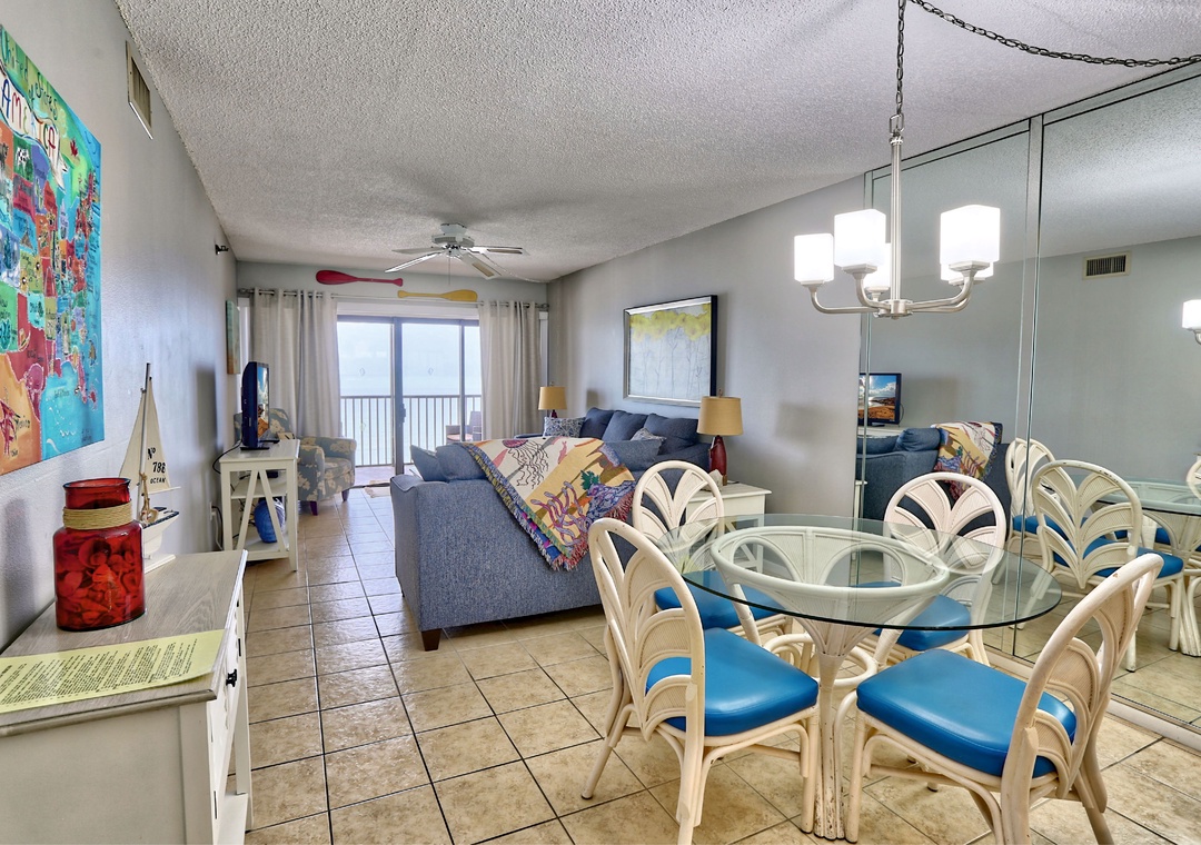 This top floor condo has a large, screened in balcony facing the beach and the Gulf of Mexico. The décor is a traditional and comfortable plus the den can be used as another small bedroom with kids bunk beds in it. The kitchen is fully equipped and you are within walking distance to restaurants, shops and other beach activities. our condo has a washer and dryer as well as free wireless internet service is available. PLEASE NOTE: This is a non-smoking property with the exception of a designated outside smoking area.
